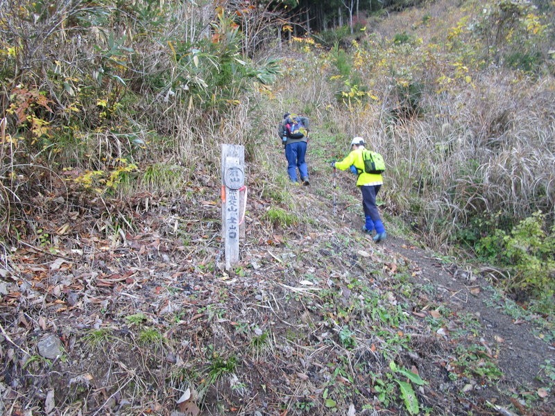 ・11月末とは思えないほど暖かな登山日和の日。登山道はたくさんの落葉で足には優しいのですが足元が見えにくい。更に歩き始めから急坂を直登したので息切れがした。稜線に出て少し風景を楽しむ余裕ができ、冬支度したブナ林や木々の冬芽を観たり、整備が行き届いた「道宗道」の”サクサク”という枯葉を踏む音を楽しむことができた。頂上では立山連峰も見れ、眺望を満喫。下山は滑らないよう緊張の連続だった。次は是非とも、フクジュソウの咲くころに行ってみたいと思った。(S・T)