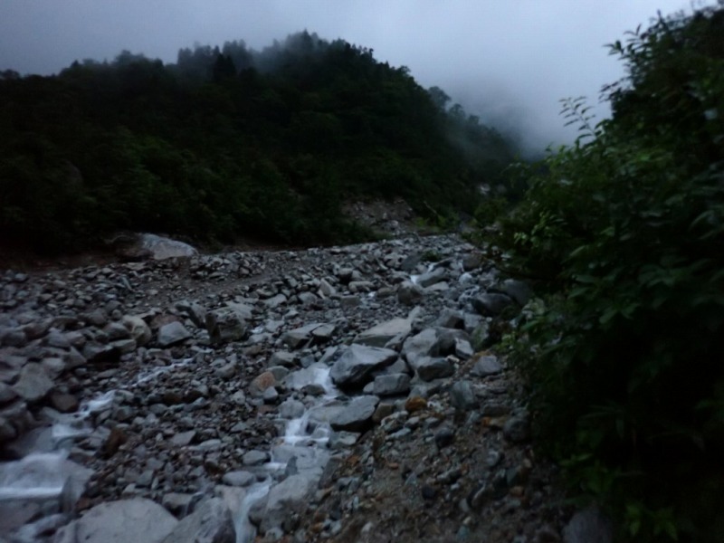 当日早朝4時過ぎからヘッドランプ付けて準備しているとパラパラと小雨が降ってきて雨具着用となり、少し不安な中のスタートになりました。穏やかな林道歩きから登山道に入り比較的緩やかな沢歩き、川を渡り、樹林帯を歩きました。ただ沢歩き、いくつかの川を渡ったりする中、雨の影響もあり、いつの間にか登山靴の中まで染みてきて、ぐちゃぐちゃになる始末でした。どんよりとした空が続き時々、晴れ間もありましたが降ったりやんだりの繰り返しでした。ブナクラ峠手前のガレ場はぐらつく岩があり足場を確かめながら登りました。雨足がやや強く風も出てきたためブナクラ峠で引き返すことになりました。ブナクラ峠のお地蔵様がとても可愛らしく癒されました。ブナクラ峠からが、実に最高に眺望がよいと聞きます。剱岳(北方稜線)・後立山連峰が素晴らしいみたいですね。猫又山はあまり登山されている方がいないのですが、静かでとてもよい山だと思います。次回はお天気のよい日に必ず行きたいと思っています。(Y・S