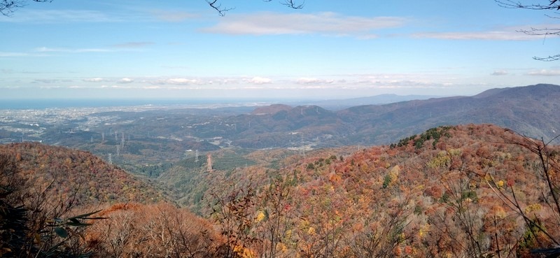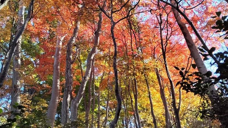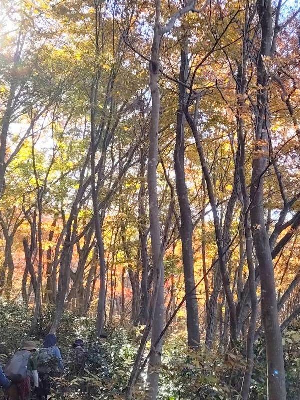 シャワーが、飛び散り皆咳き込む、というハプニングもありましたが(笑)カプサイシンシャワーのおかげで熊にも合わず無事下山出来ました。晴天に恵まれ、落ち葉の絨毯を歩き、時折吹く風が気持ちよく、枯葉が舞い散り赤・黄色紅葉が素晴らしく青空に映えた、841m奥高尾山でした。素敵で楽しい1日でした。ありがとうございました。(S・M