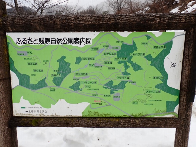 ・冬季は、ふるさと劒親自然公園Pまでは除雪しないので、林道脇の上市町森林総合センターPか、その手前の上市カヌー競技場Pに駐車することが望ましい。
