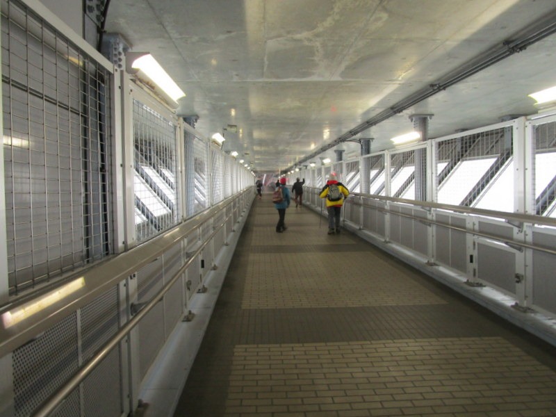 ②エレベーターで昇り、自転車歩行者用通路を歩く(橋の下)。